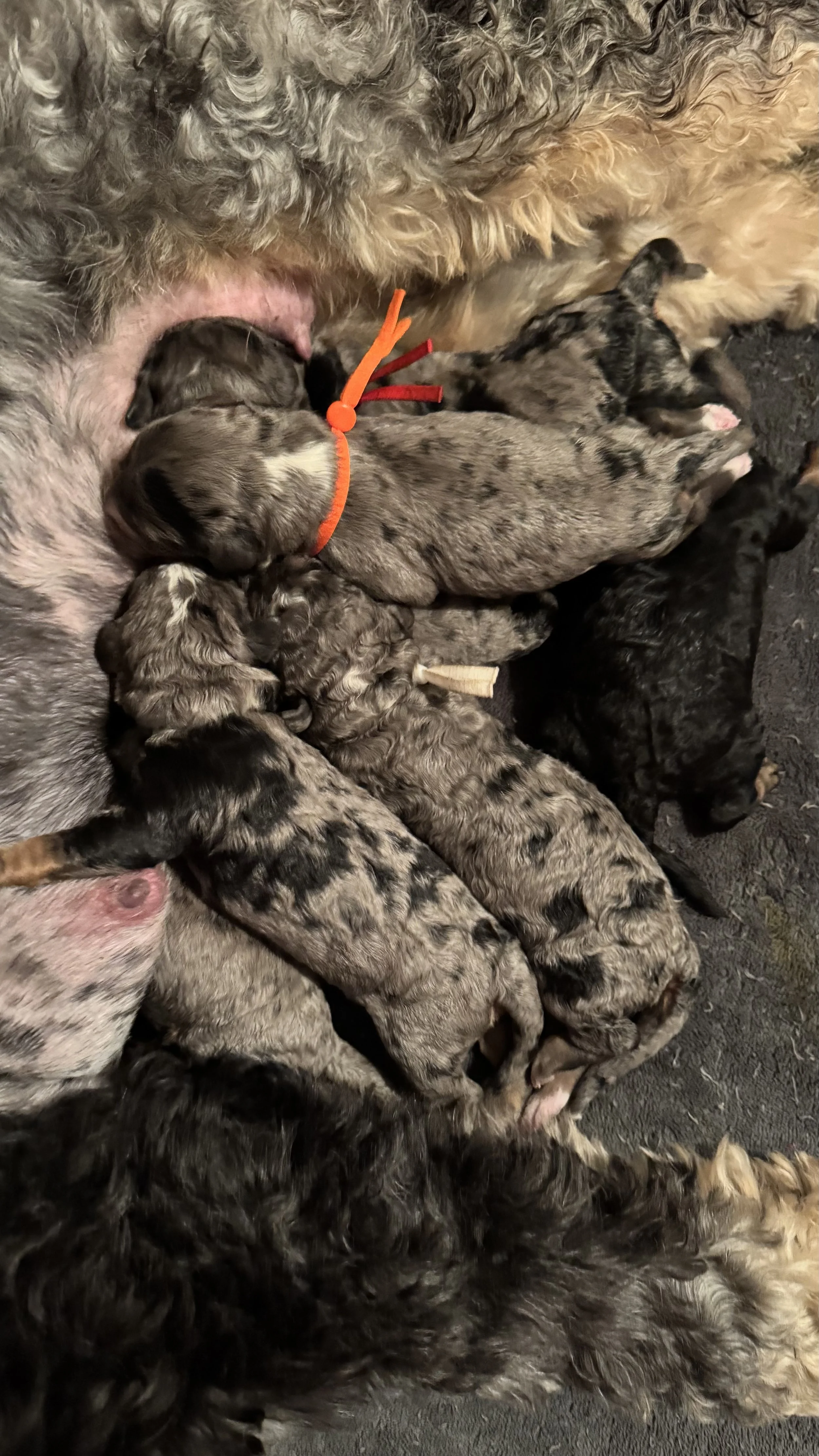We have a few spots open on this male heavy litter of merle bernedoodles ready to go home Christmas Day!