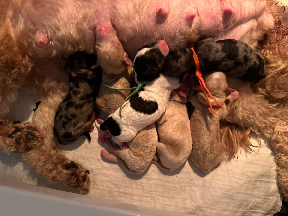 Rosie’s petite goldendoodle litter was just born; look at all that beauty!