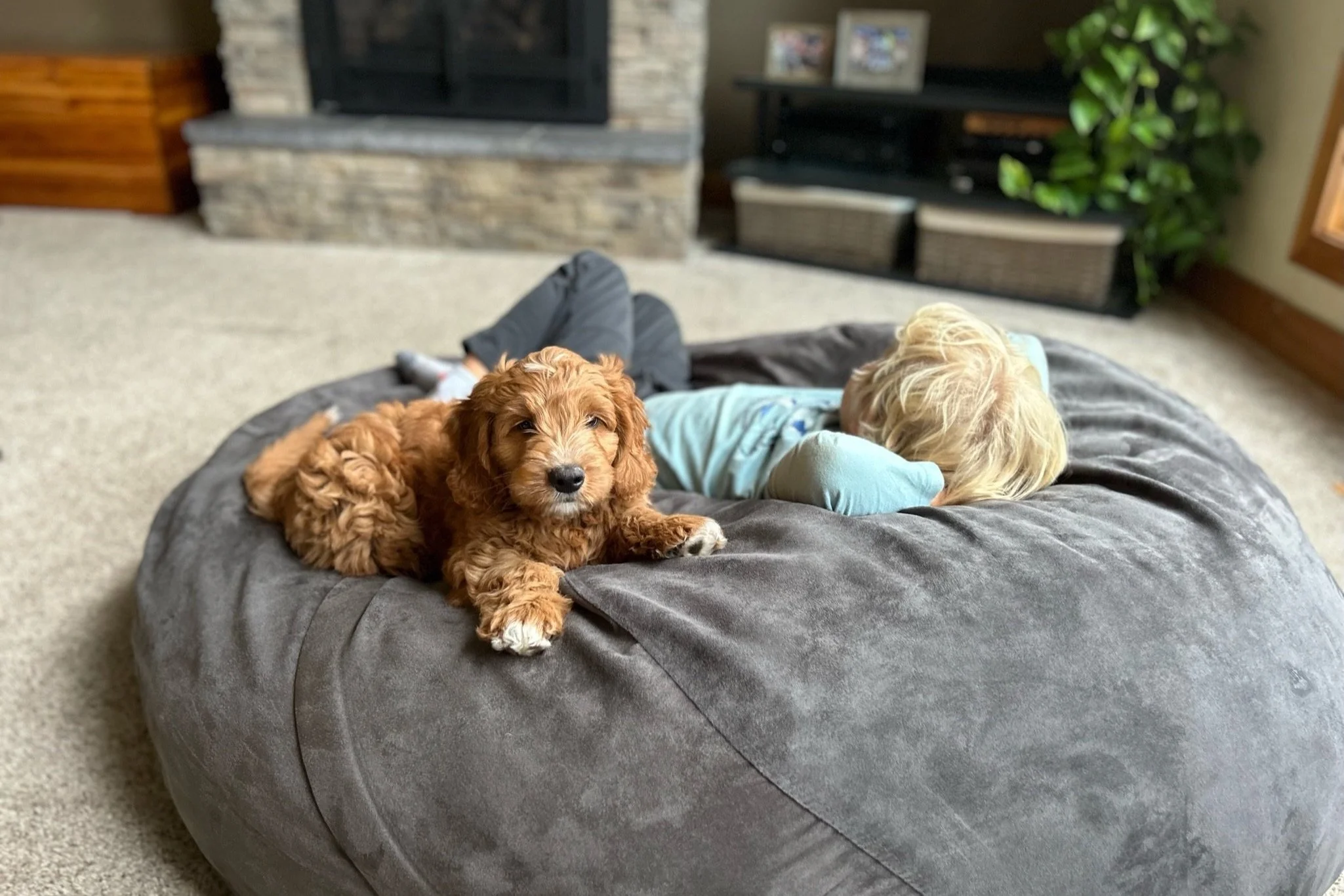 This mini Goldendoodle Rudy is a boy’s best friend!