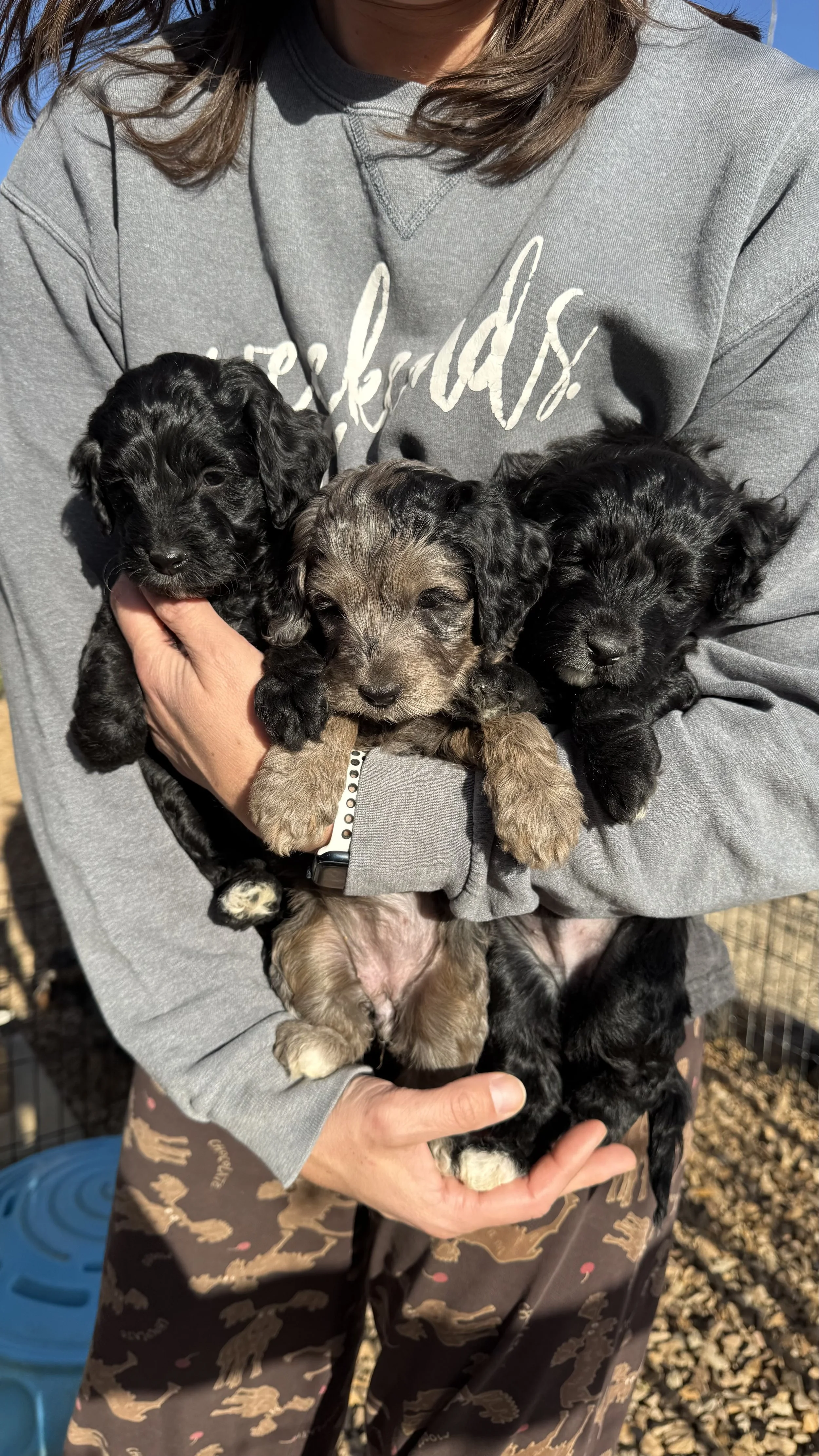 There are five females, and one male. There’s also a wide variety of coat colors, with wavy/straight coat texture. Their anticipated adult size to be 15-25 pounds.