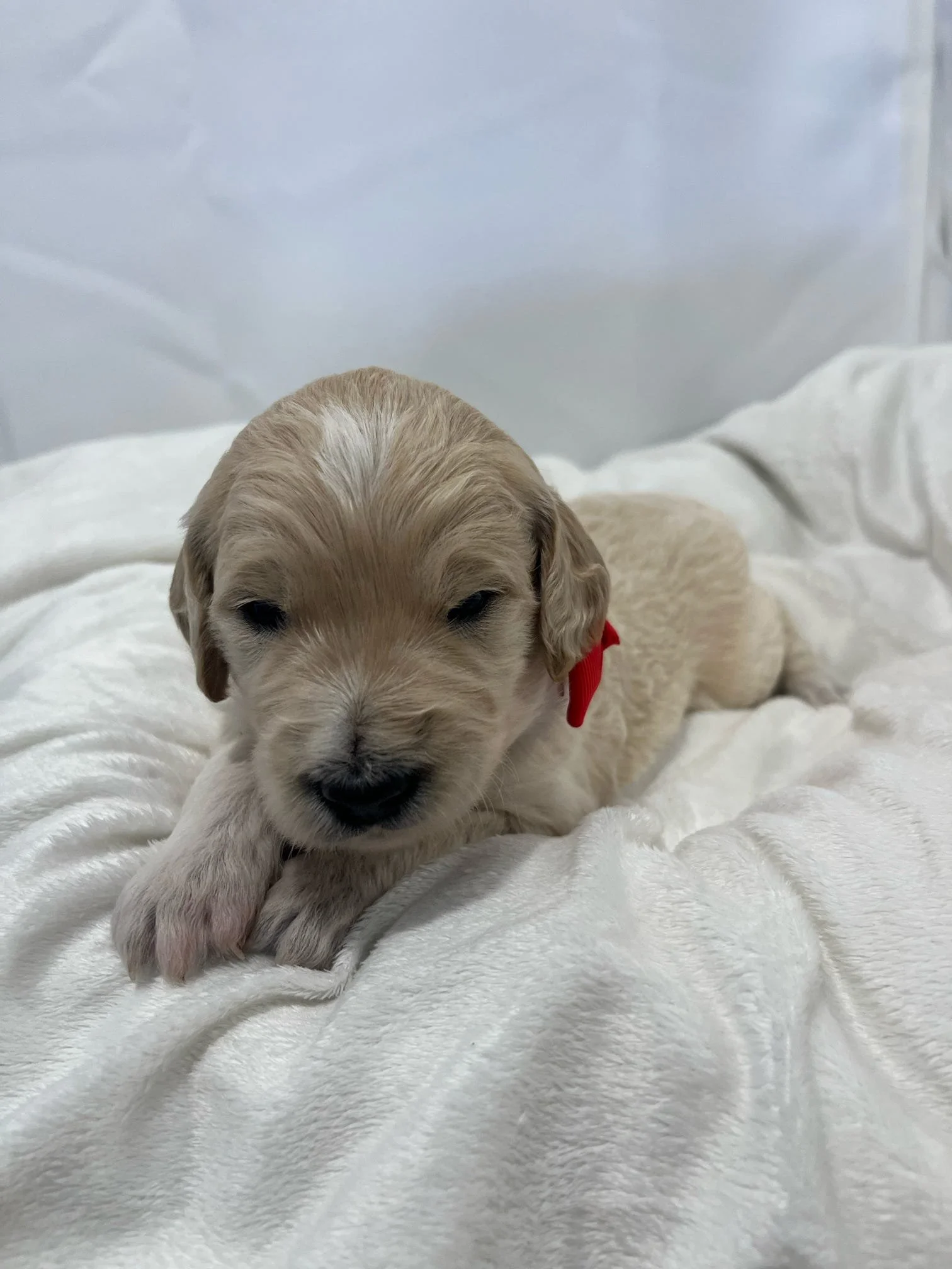 Chloe’s litter of four beautiful petite goldendoodle nuggets are growing so fast! These puppies have diverse coat colors - phantom, merle, red abstract - and their joyful personalities are showing through more and more!